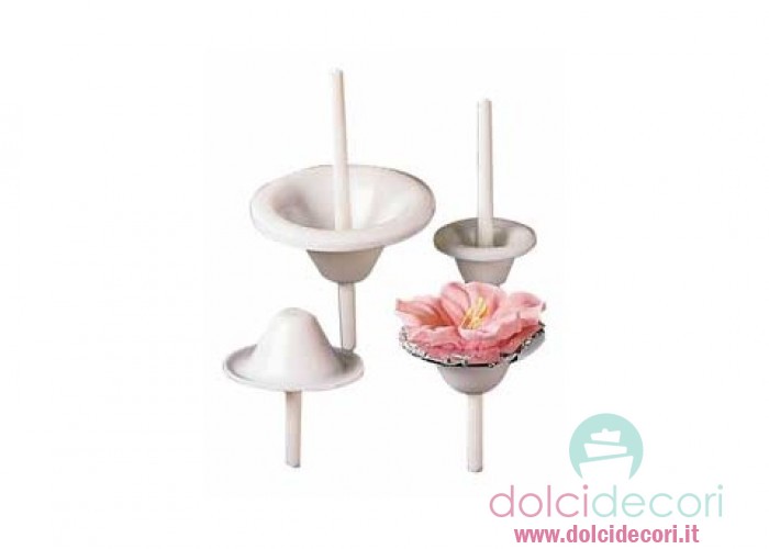Supporti per fiori in pasta di zucchero o pasta di gomma di diverse misure. Utilissimo strumento per pasticceria che permette di creare le decorazioni per dolci in maniera precisa.