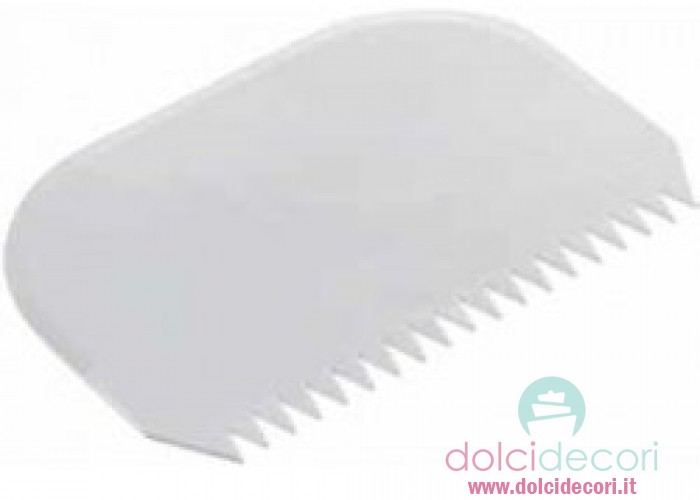 Raschietto rigido modello dentellato più grande da 14,7 cm per 9,6 cm. Accessorio per torte indispensabile in pasticceria.