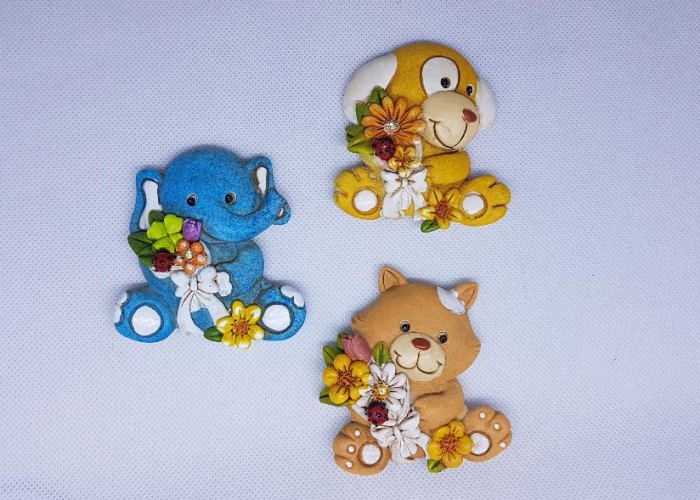 Animali molto ben curati nei piccoli dettagli, un pò più grandi dei normali magneti. La bomboniera si presta molto bene anche per un battesimo.