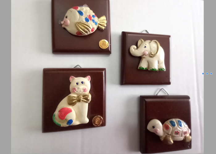 Quadretti in legno con animali in ceramica, una dolce bomboniera per bimbo/bimba. Ultimi pezzi disponibili.