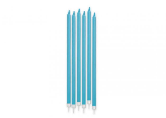 Candeline matita acqua marina dal design classico e dal colore sobrio e versatile. Perfette per una torta di compleanno classica e delicata ma anche per una torta decorata dai toni più decisi!