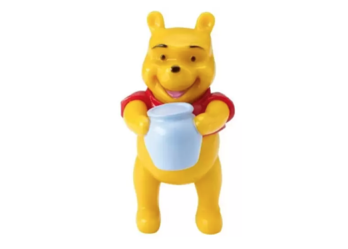 Soggetto Winnie the Pooh con il suo classico barattolo di miele. Il personaggio molto amato dai bambini. In plastica alimentare adatta per il diretto contatto con gli alimenti.