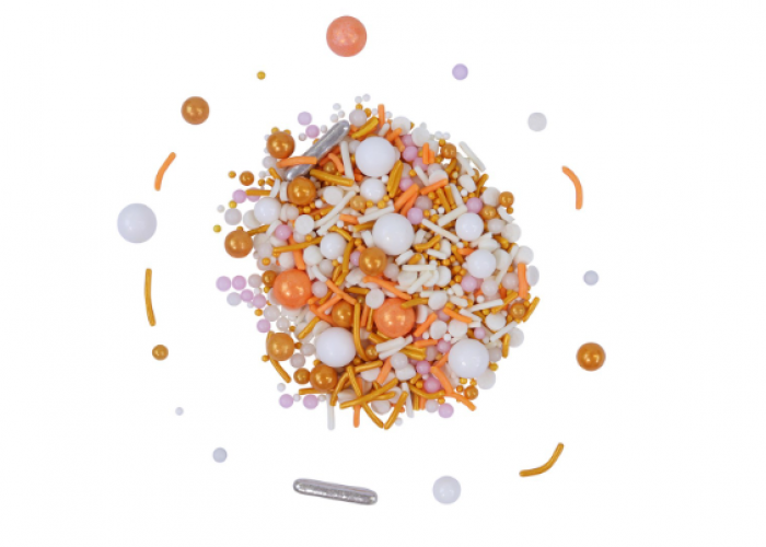 Cristalli di zucchero nella colorazione Rosa Gold, un colore prezioso e brillante per decorare elegantemente.