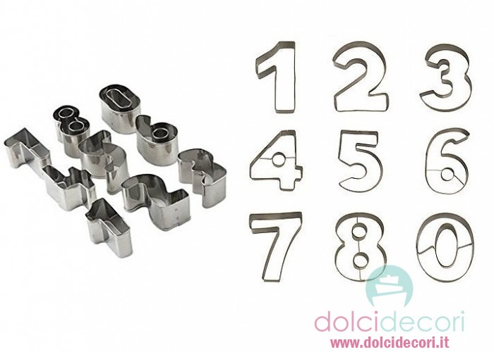 Tagliafondente numeri in acciaio. Crea numeri e lettere per le tue torte decorate o per biscotti personalizzati. Arricchiscili con decori di glassa.