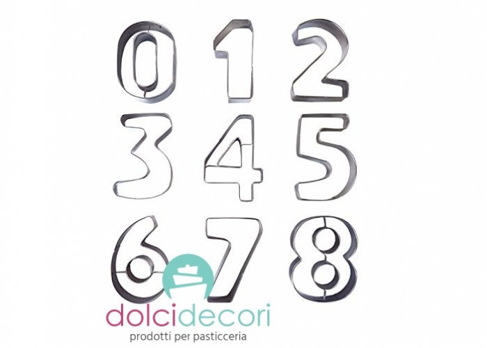 I tagliabiscotti a forma di numero per creare biscotti, con gli anni del compleanno o anniversario. Stampi in inox. Confezione singola. Dimensione: cm 6