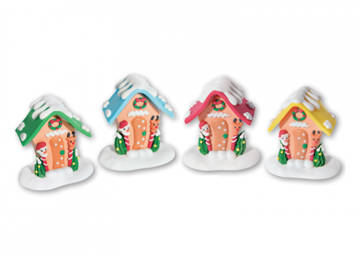 Case spettacolari in zucchero e Gelatina, casette innevate e colorate allegramente. Con simpatici personaggi Babbo Natale e Renna o Babbo Natale e pupazzo di neve.