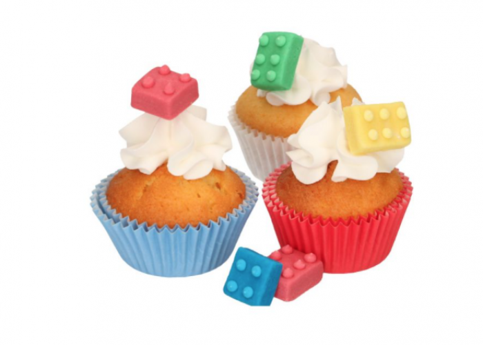 Decora le tue torte, cupcakes o biscotti con questi bei mattoncini nei colori blu, rosso, verde e giallo. Il set contiene 8 mattoncini in 2 diverse misure.