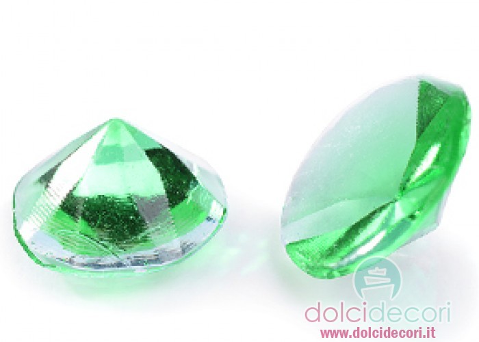 Diamanti alimentari color smeraldo, per arricchire e decorare i tuoi dolci con degli eleganti punti luce verde brillante. I diamanti alimentari, realizzati principalmente in gelatina, sono una vera e propria novità nel cake design. Puoi mixare colori diversi per un effetto ancora più unico.