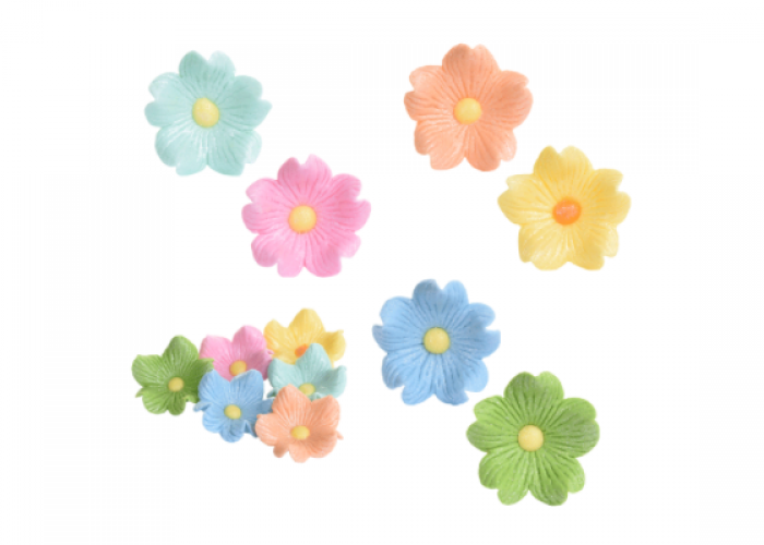 Fiore perlato con i bordi leggermente ondulati che danno un particolare effetto. Colori color pastello, ottimi anche per decorare cake cupe.