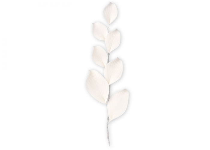 Ramo di foglie bianche per decorare torte di alta professionalità. Il ramo di foglie bianco può essere colorato a secondo della necessità del colore di abbinare ai fiori.