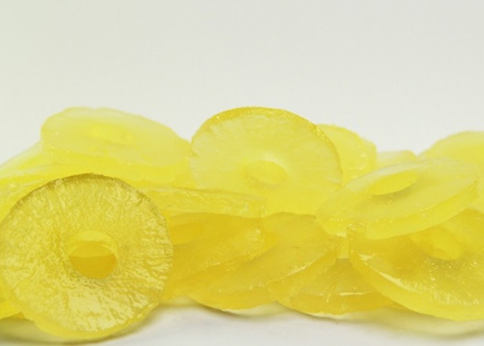 Ananas candito a fette, per decorare o dare un gusto particolare ad un dolce.