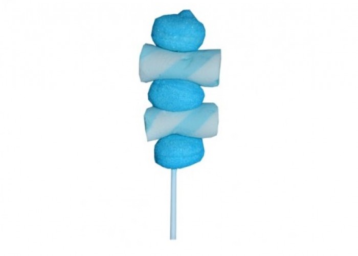 Confezione 12 pezzi di mini spiedino celeste, incartati singolarmente, pronti per essere offerti.