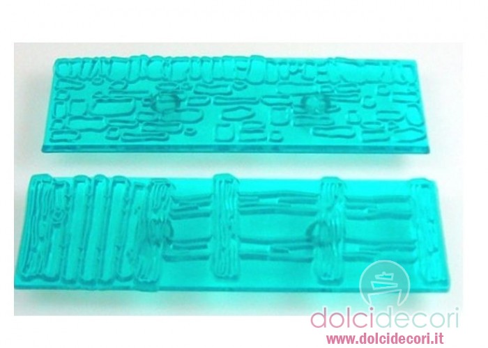 Kit di cutter muro e steccato, per realizzare muretto e steccato in pasta di zucchero. Il kit è formato da 2 pezzi: Cobblestone Wall, misura: 15x4.5 cm e Rustic Fence and Gate, misura: 15x4.5 cm. Imprimete il cutter sulla pasta facendo una leggera pressione, la decorazione resterà impressa.