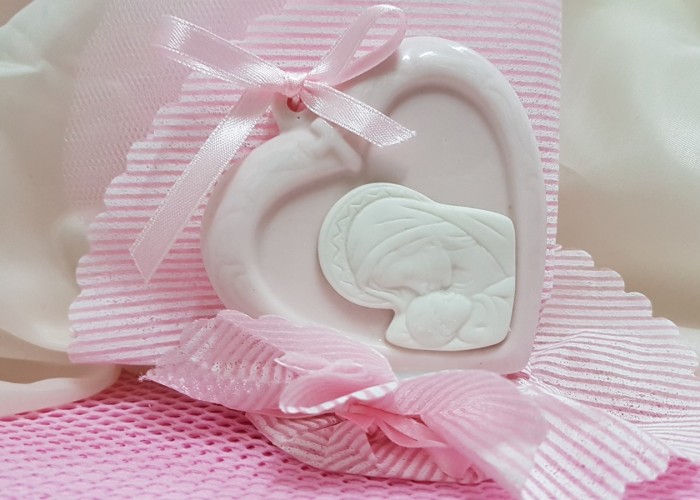 Topper battesimo maternità in ceramica, dai colori pastello per la delicatezza del sacramento.
