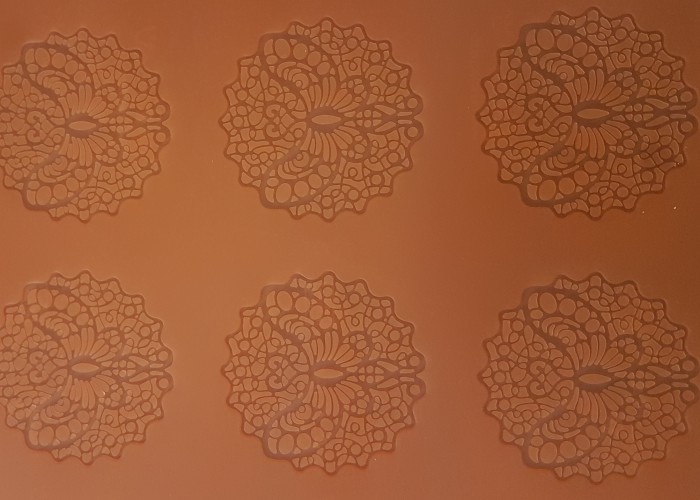 Fascia in silicone per decorazioni con pizzo. Create dei bellissimi centrini in pizzo con questa fascia, è semplice ma di grande effetto. Usa la fascia in silicone con l'apposita pasta per pizzo Sweet Lace presente sul nostro sito, con essa il tuo risultato sarà fenomenale. La fascia ti permette di realizzare 6 farfalle contemporaneamente.