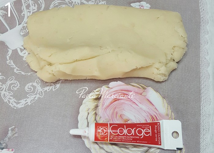 3. Preparate il marzapane verde impastando il marzapane assieme alla pasta di pistacchi. Se non la trovate potete utilizzare del colorante verde per alimenti, spolverizzando il piano di lavoro con poco zucchero a velo.