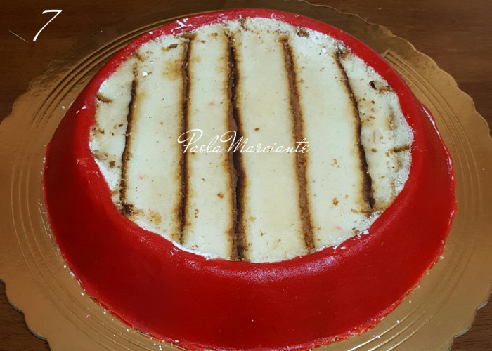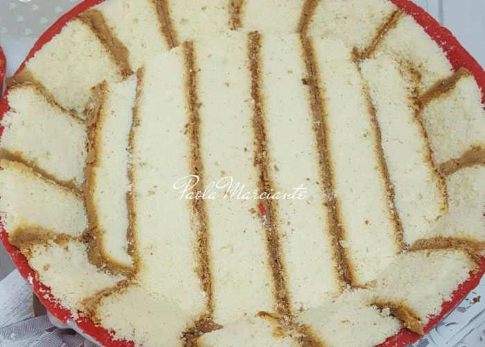 5. Tagliate il pan di spagna in strisce alte almeno 6 cm dalle quali ricaverete anche in questo caso dei trapezi (proprio perchè i bordi della tortiera sono svasati).