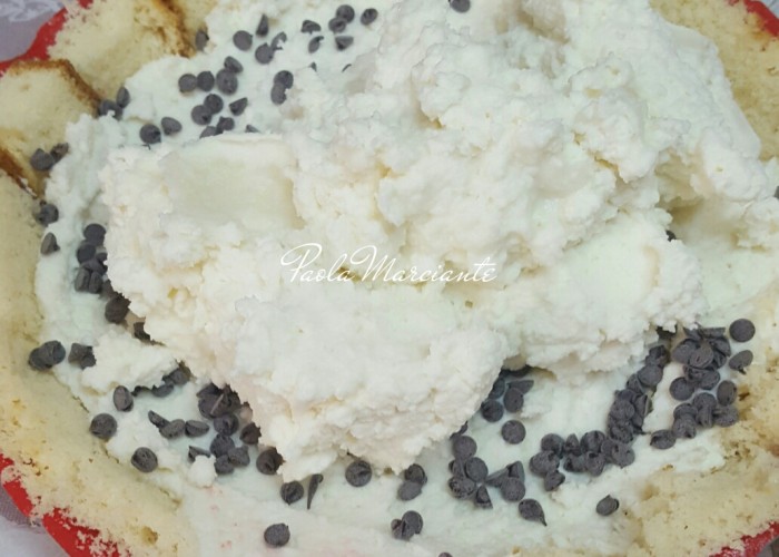 2. L'indomani, passate due volte al setaccio la ricotta fino ad ottenere una crema liscia e soffice. A questo punto unite alla crema il cioccolato a gocce e, se vi piace, l'arancia candita tagliata a piccoli dadini e ponete la farcia ottenuta in frigorifero dentro ad una ciotola coperta con pellicola trasparente.