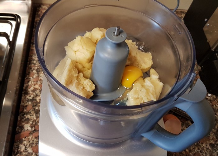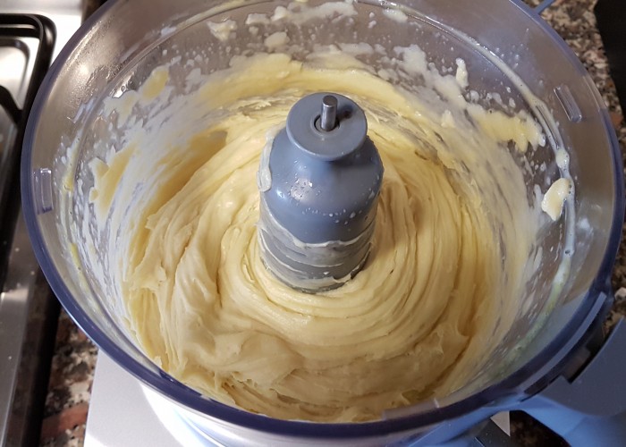 3. Lavorate l’impasto per circa 1 minuto ed unite una alla volta le uova: dovete ottenere una pastella liscia e densa. Aggiungete il pizzico di bicarbonato e lavorare, infine aggiungete le ultime due uova con lo stesso procedimento descritto, fin quando la pasta sarà ben amalgamata.