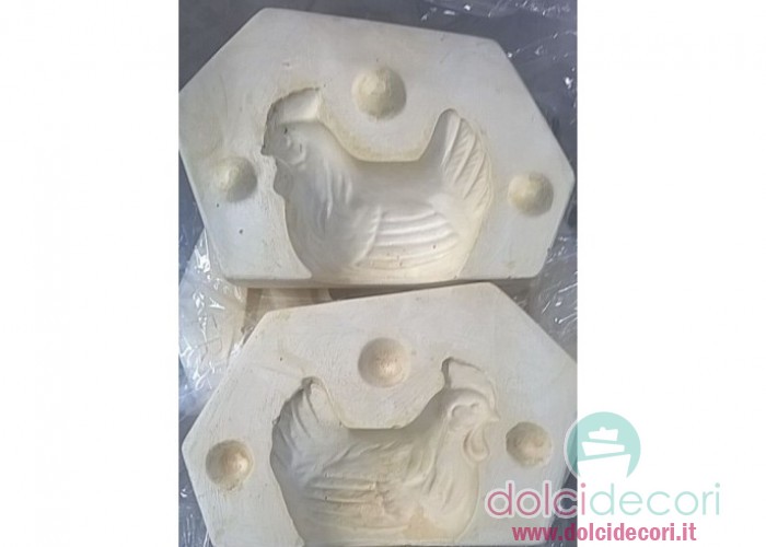 Stampo in gesso gallina composto da 2 pezzi per un completare la forma. La gallina in marzapane può essere utilizzata anche per decorazioni torte pasquali.
