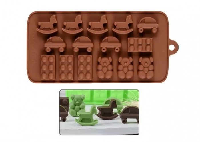Lo stampo comprende 4 cavallucci, 4 macchinine,4 mattoncini e tre orsacchiotti.